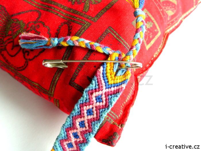 neboli Sichrhajcku, pomocí které náramek připevníme k nějaké podložce - noze, polštářku nebo něčemu jinému.